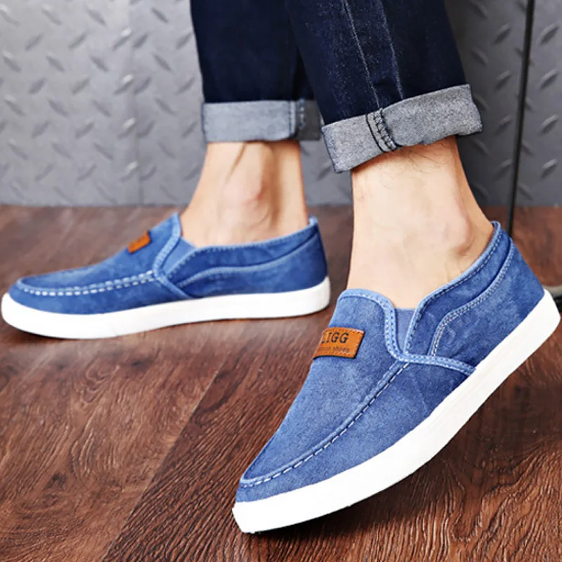 Review Top Denim shoes for student solid fabric loafers men slip-on shallow simple style flat sneakers 2019 ne